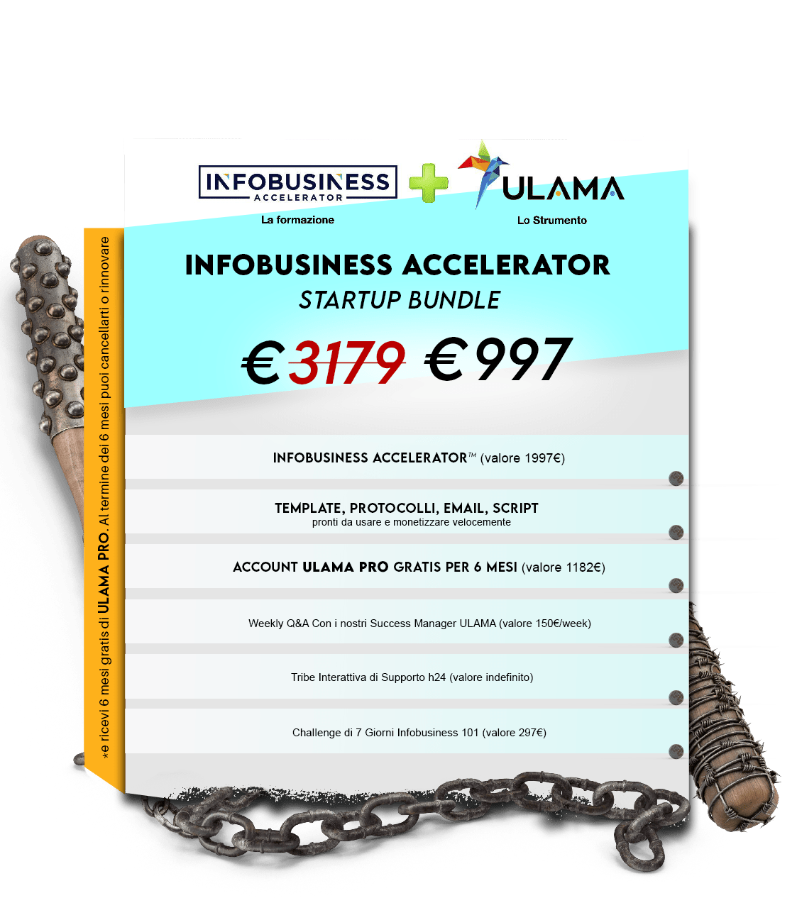 Infatti, come hai potuto ascolare nel webinar, il nuovissimo programma formativo di Infobusiness Accelerator™ è stato creato dalla pancia di ULAMA INC.